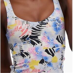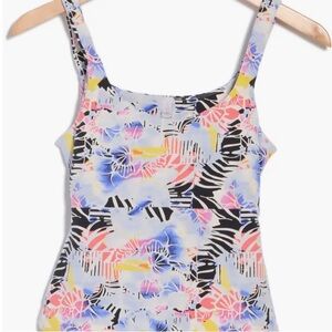 Workouts are even better in this hip-length tank made of moisture-wicking fabric with a breathable strappy back.