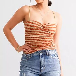 Made for warm-weather outfitting, this textured top features a slim-fitting silhouette and chic sweetheart-neckline with ruched bust detail and thin adjustable shoulder straps.