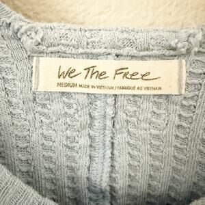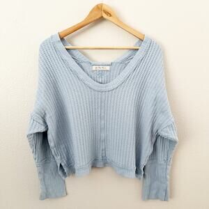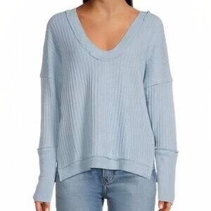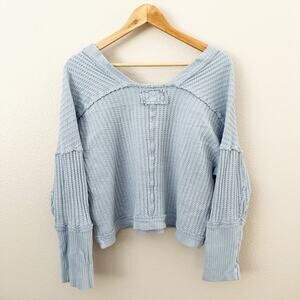 FREE PEOPLE | New Magic Long Sleeve Wide Scoop Waffle Knit Thermal Blue | Large