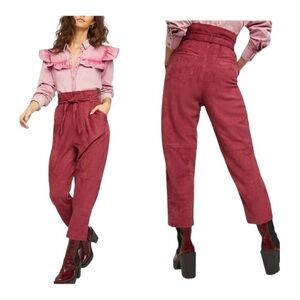 FREE PEOPLE Nightfall Suede Tie Waist Paperbag Pant Size 2 Pomegranate NWT
