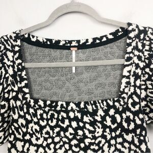 Adorable black & white leopard print shirt by Free People. Square neckline. Short puff sleeves. Textured knit fabric. Elastic at the sleeves. Great condition. Womens size small.