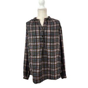 FREE PEOPLE Northern Bound Plaid Flannel Pullover Shirt in Onyx, Size M