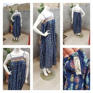 FREE PEOPLE ON MY OWN MAXI SLIP DRESS BLUE