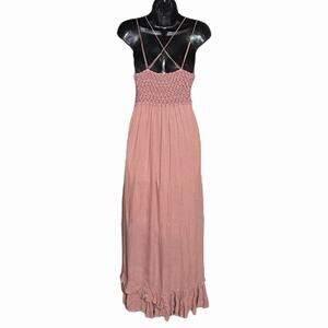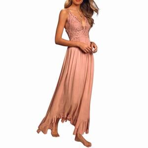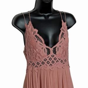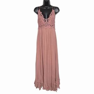 FREE PEOPLE ONE ADELLA MAXI SUN DRESS BOHO ROMANTIC WESTERN DUSTY ROSE LACE M