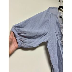 FREE PEOPLE ONE Ruffle Me Up Peasant Blouse, Light Gray/Blue, Sz XS/S