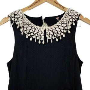 FREE PEOPLE OPEN BACK WAFFLE TEXTURE CROCHET NECKLINE BLACK DRESS SIZE MEDIUM IN EXCELLENT CONDITION!