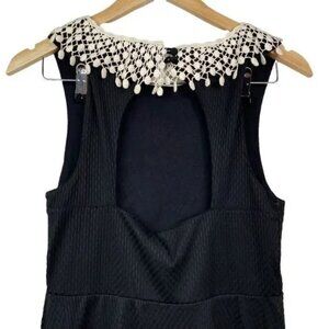 FREE PEOPLE OPEN BACK WAFFLE TEXTURE CROCHET NECKLINE BLACK DRESS MEDIUM-EUC