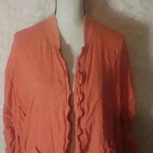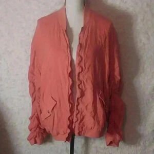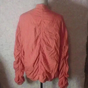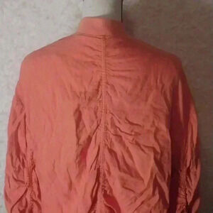 FREE PEOPLE ORANGE LINEN BLEND BOMBER JACKET SIZE M RUCHED SLEEVES AND BACK OVERSIZED