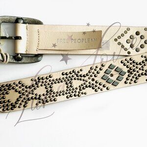 NWT! Free People Off The Record Stud Belt In Neutral & Silver (size S/M). Just as effortless as it is edgy, this stunning belt is featured in a luxe leather fabrication with defined stud detailing throughout for added dimension.