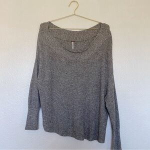 FREE PEOPLE Off-Shoulder Asymmetric Hem Pullover Sweater in Gray SZ M