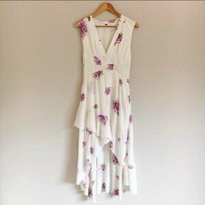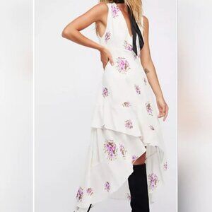 FREE PEOPLE | Off-White + Purple Midi Birdie Hi-Lo Dress (Size 0)