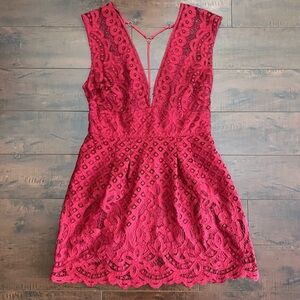 FREE PEOPLE One Million Lovers Lace Overlay Mini Dress Red Boho Bohemian