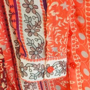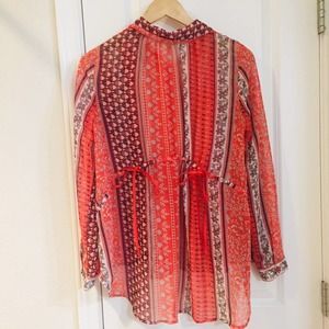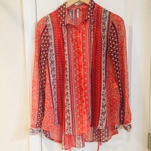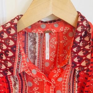 FREE PEOPLE Orange Boho Sheer Long Sleeve Button Front Top XS $78 Floral