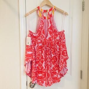 FREE PEOPLE Orange Mimi Boho Tunic Swing Top Small $88 NWT Summer Floral