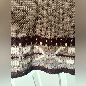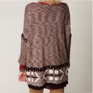 FREE PEOPLE Oversized Lt. Brown Aztec Wool Mohair Blend Scoop Neck Tunic Grandma