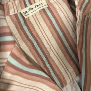 New Free People Oversized Short Sleeve Button Down Shirt Sz Small Pink stripe multi Tortoise buttons Front chest pocket button down top with vertical stripes Cotton/polyamide Pit to pit: 22” Length: 31-32"