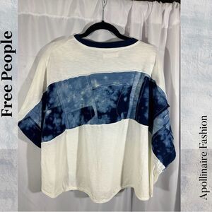 FREE PEOPLE PATCHWORK OVERSIZED TSHIRT BLUE WHITE XS NWOT