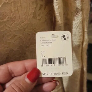 FREE PEOPLE PEARL LACE CHAMPAGNE TOAST MINI DRESS SIZE L