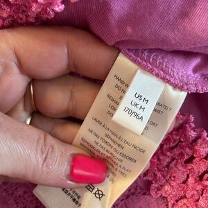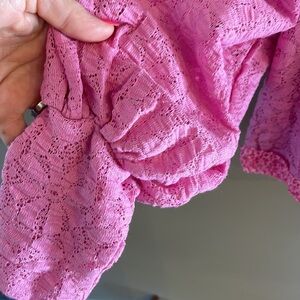 FREE PEOPLE PINK LACE bubble sleeve crop top circular open back elasticized Med