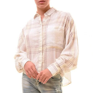 FREE PEOPLE PLAID CROPPED BUTTON DOWN