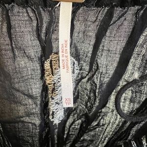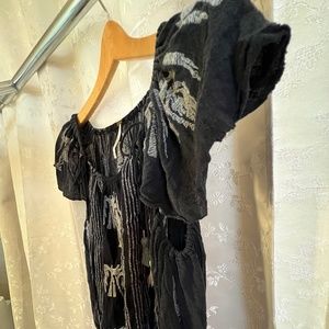 FREE PEOPLE PUKKA PEASANT BOHO EMBROIDERED TASSEL POM POM Short Sleeve Blouse-XS