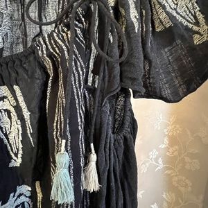 FREE PEOPLE PUKKA PEASANT BOHO EMBROIDERED TASSEL POM POM S/S Blouse-XS-EUC!