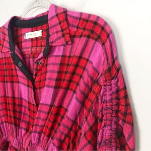 FREE PEOPLE | Pacific Dawn Red Pink Black Cinched Plaid Flannel Top Women’s S