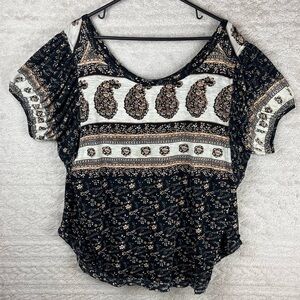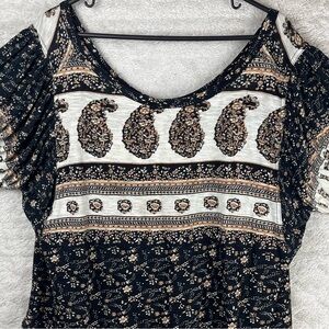 FREE PEOPLE Paisley Modal Blend Puff Sleeve Top Sz Large Boho Beachy Whimsigoth