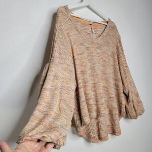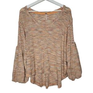 FREE PEOPLE Pastel Dream Knit Top Honeycomb Puff Sleeve Relaxed Sz XS Boho Cozy