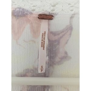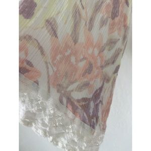 FREE PEOPLE Pastel Floral Boho Blouse Cardigan with Lace Trim Size Small in excellent condition. Retail $188.