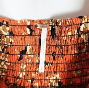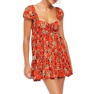 A floral pattern defines this mini dress by Free People, styled with a sweetheart neck and gathered details for added appeal. Short cap sleeves. Smocked Back. Linen/Viscose