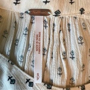 FREE PEOPLE Patterned Top Cream White Rune Runic Anchor Flower Long Sleeve