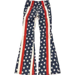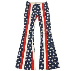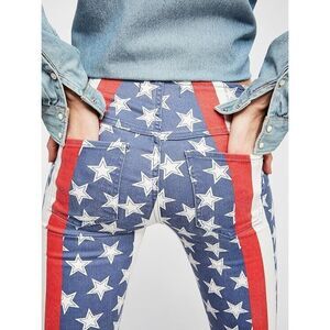 FREE PEOPLE Penny Pull-On Stars & Stripes Flare Bell Bottom Jeans Sz 25