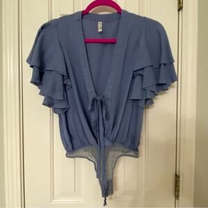 FREE PEOPLE • Periwinkle Ruffle + Lace Call Me Later Bodysuit