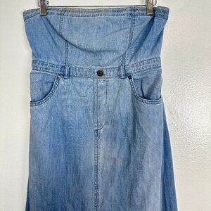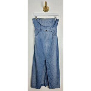 FREE PEOPLE Picture Perfect Strapless Denim Midi Dress in Wash Allure Size US 0