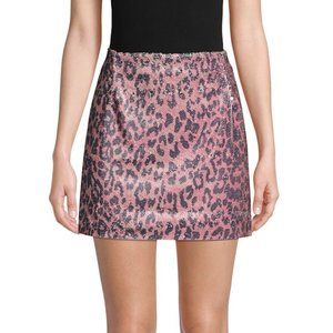 FREE PEOPLE Pink Cheetah-Print Sequin Mini Skirt - Size 2 NWT