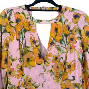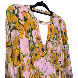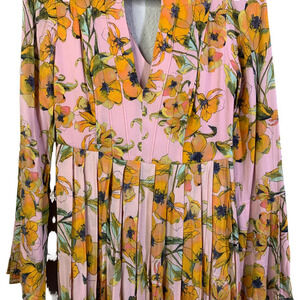FREE PEOPLE Pink & Yellow Floral Tegan Pleated Mini Dress