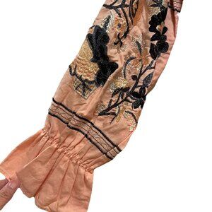 FREE PEOPLE Pink/Peach Fleur Du Jour Embroidered Cotton Shift Mini Dress Sz L