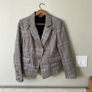 FREE PEOPLE Plaid Chess Academia Linen Blazer Size S