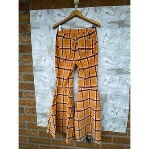 We the free New with tags Marigold yellow, ivory, and brown plaid Zip & button fly "Float on Flare" pants from FP