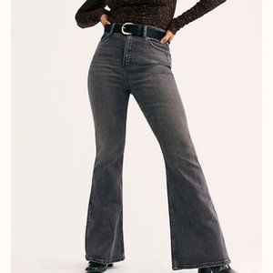 This is a pair of new without tags (NWOT) Free People Plus Size Crvy Robin High Rise Flare Jeans in the dark gray color "Nightfall".