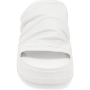 Take a bold step in these so cool leather sandals, featured in a slip on style and a ruched strap. Supple scrunched leather raises the bar on this sporty slide sandal that sits on a toothy platform sole.
