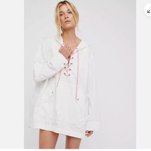 FREE PEOPLE Poplin Lace Up Hooded Pullover Cove-Up Oversized XS/S