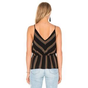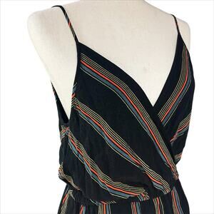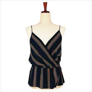 FREE PEOPLE Psychedelic Summer Peplum Top Black w/ Orange Stripes Size M