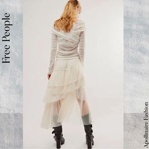 FREE PEOPLE REALITY CHECK TIERED MIDI SKIRT IN IVORY XL NWT