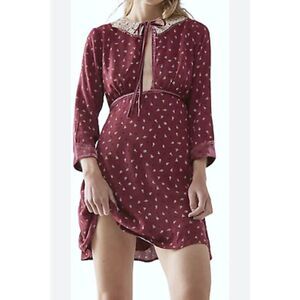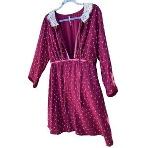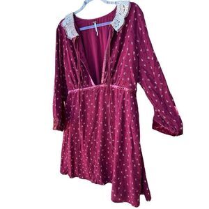 FREE PEOPLE RED DELFINA LACE COLLAR VELVET TRIM MINI DRESS SIZE L