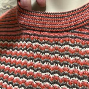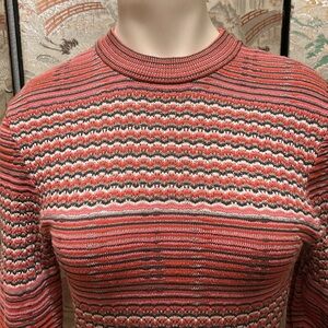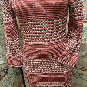 FREE PEOPLE RETRO LONG SLEEVED SIMI SHEER RED/BROWN STRIPPED SWEATER DRESS SZ M