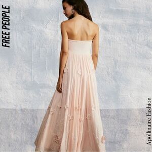 FREE PEOPLE ROSA FLORAL APPLIQUÉ MAXI DRESS IN PEACH NWT M