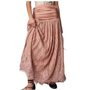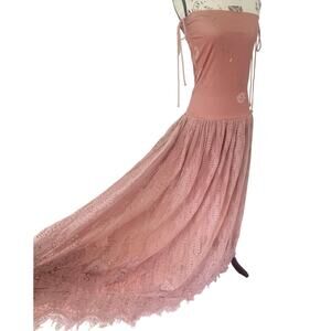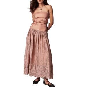 You're in for a treat with this Free People Rosie Plains Convertible Dress! This versatile dress can be worn as a maxi skirt or a strapless maxi dress, giving you two fabulous looks in one. The blush pink floral design and lace bottom add a touch of cottagecore charm, making it a rare and limited edition piece.
