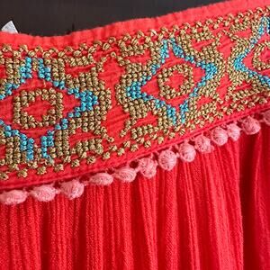 FREE PEOPLE | Red Crinkle Gauze Crochet Lace Trim Shorts Swim cover up | Small